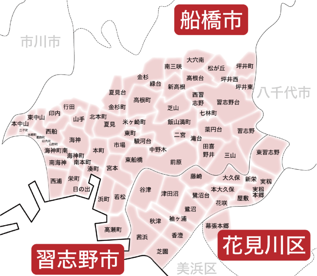 船橋市西部・東部地域/習志野市全域/千葉市花見川区幕張本郷地域